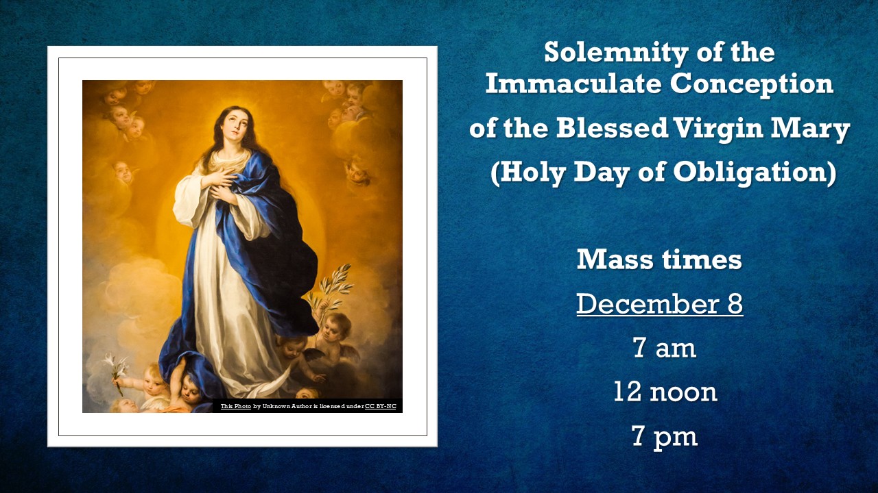 Solemnity of the Immaculate Conception Mass Times Teresa Palmer / Tuesday, November 18, 2025 0 0 Article rating: No rating Read more